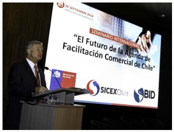 El ministro de Hacienda, Felipe Larraín, inauguró el seminario “Futuro de la Agenda de Facilitación Comercial de Chile”, que organizó la cartera que encabeza, en conjunto con el Banco Interamericano de Desarrollo (BID). Y es que la facilitación del comercio exterior es uno de los principales retos para el Sistema Interconectado de Comercio Exterior (Sicex).